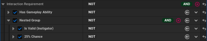 Every requirement and condition has a built-in "Not" property. This allows you to instantly invert the logic (e.g., turning "Is Alive" into "Is Dead") directly in the editor without writing new C++ classes.